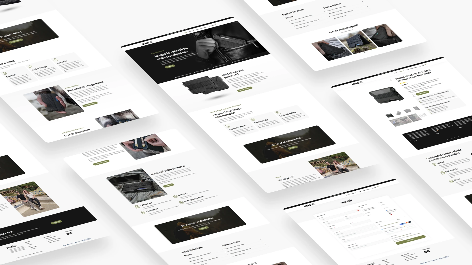 A StashX részére először arculati színeket és betűtípust kellett választanom, majd logót terveznem. Ez egy adatlopásgátló alumínium slim pénztárca, a fő célközönség pedig az utazásaik és mindennapi életük során a modern egyszerűséget kedvelő férfiak, ezért választottam a zöld (nyugalom és biztonság) szín egy sötétebb, pasztell árnyalatát a márkához. A logóhoz a tárca vonalaihoz hasonló, modern betűtípust választottam (Orbitron), az X ikon pedig az egyszerű és vékony összecsukható pénztárcát szimbolizálja. A webshop design-ja is ezt a modern és minimalista életérzést tükrözi és részletesen bemutatja a termék előnyeit. A termék oldalt úgy építettem fel, hogy egészen a vásárlásig vezesse az online kampányokból érkező látogatót.